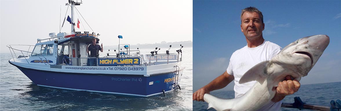 Sea fishing trips available from Great Yarmouth, Norfolk all year round aboard High Flyer 2. An Offshore Fast Fishing Vessel Procharter P4, ownered and skippered by Jon Old of East Anglian Charters Ltd.